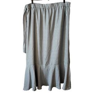 Vince Camuto New Striped Side Ruffle Pull On Midi Skirt Gray White XL Faux Wrap