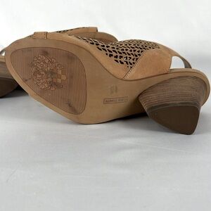 Vince Camuto Camel Nubuck Perforated Leather Peep-Toe Sandal Stacked Wedge Block Heel - Dastana, Sz 7M / 37.5