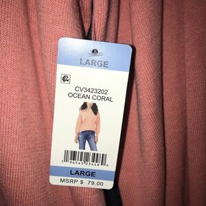 Vince Camuto Ocean Coral Collared V Neck Sweater Top Long Sleeve Large Women's .