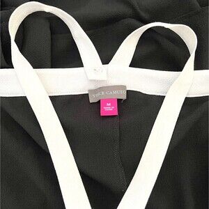 Vince Camuto Off Shoulders Black Top Womens Size M White Bow Halter Neck Flutter