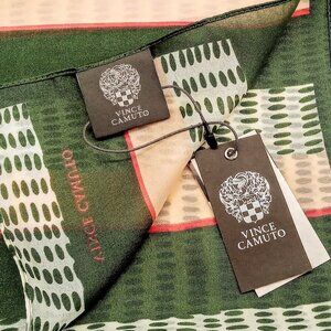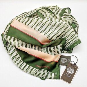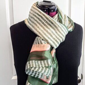 Vince Camuto Olive Green Pink Print Oblong Scarf NWT
