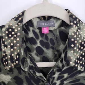 Vince Camuto Olive Leopard Print Blouse Sz XS