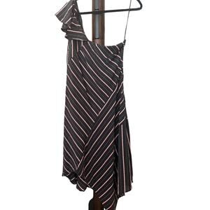 Vince Camuto One Shoulder Striped Dress Women’s 8 Asym Hem Lined Side Zip EUC