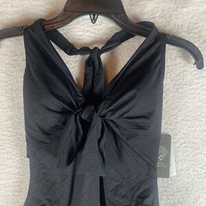 Vince Camuto One-Piece Swimsuit Women's 6 Black Plunging Tie-Front Halter S9446.