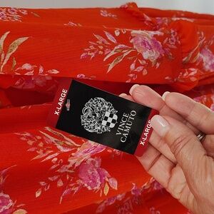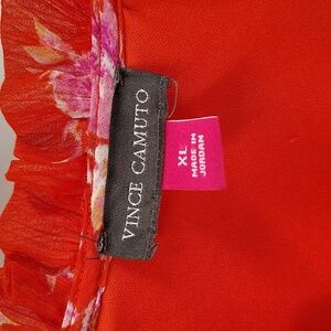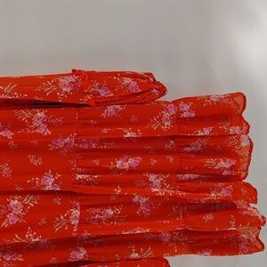 Vince Camuto Orange Floral Dress Size XL Sheer Long Sleeve Flowy V Neck Tiered