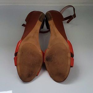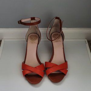 Vince Camuto Orange/Saddle Leather Wedge Ankle Strap Shoes