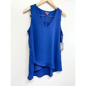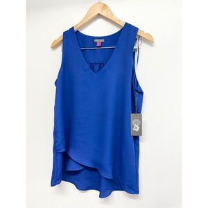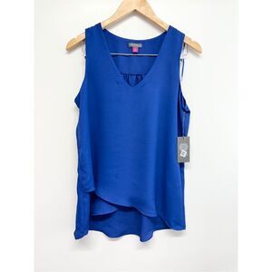 Vince Camuto Overlap Blouse Size Small Royal Blue Sleeveless V Neck NEW