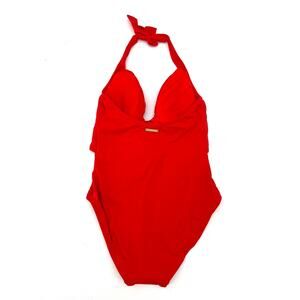 Vince Camuto POPPY Solid Red Knot-Front Halter One-Piece Swimsuit US 8 NWT