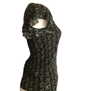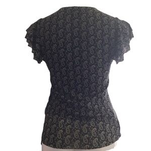 Vince Camuto Paisley Floral Flutter Sleeve Top with V Neck beautiful triple ruffle flutter sleeves, pullover style, raw hem edges, fully lined Size XS