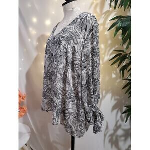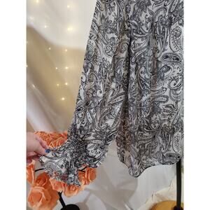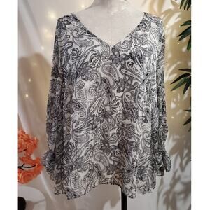 Vince Camuto Paisley Sparkle Chiffon Long Puff Sleeve V-Neck Blouse Plus Size 3X