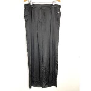 Vince Camuto Pants Pleated Wide Leg High Rise Flowy Satin Trousers Rich Black 14