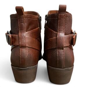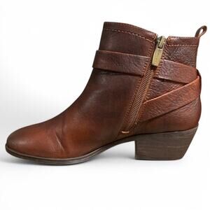 Vince Camuto Peamer Cognac Burnished Leather Ankle Boots Size 7