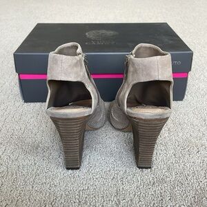 Step out in style with these Vince Camuto taupe peep-toe booties. Perfect for any occasion, these shoes offer both comfort and elegance.