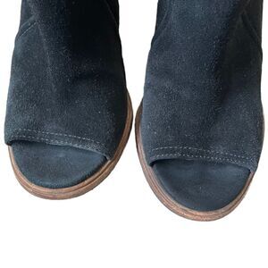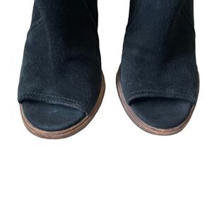 Vince Camuto Black Peep Toe Stacked Block Heel Faux Suede Sling Back Sandals Size 7.5