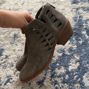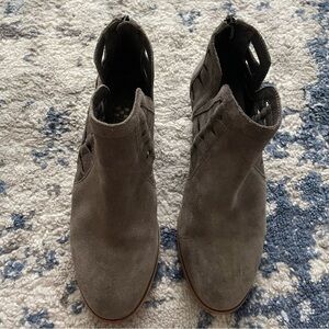 Vince Camuto Peera Cutout Ankle Bootie Boots Suede Leather Size 7 Grey
