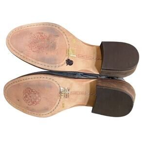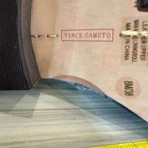 The Vince Camuto bootie in gray is designed for women and features a stylish cutout design with a back zipper closure. Made from suede leather, these boots have a block heel and are available in US size 8M and EU size 38. Manufactured in China, they offer a chic and comfortable fit. The item is pre-owned.