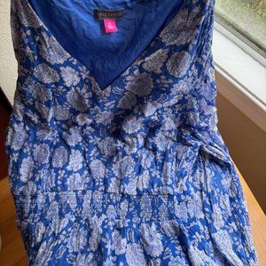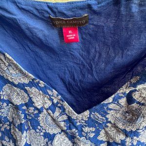 Vince Camuto Peplum V-Neck Floral Blue White Sheer Sleeve Lined Blouse NWT XL