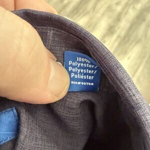 The Vince Camuto Performance Shirt for men in size Large is a stylish and versatile addition to any wardrobe. Made from lightweight and breathable polyester material, this shirt features a classic crosshatch pattern in a bold blue color. With a collared neckline, long sleeves, and button closure, it is suitable for casual or workwear occasions. The spread collar and regular fit add a touch of designer flair, while its quick-dry and machine washable features make it convenient for everyday wear. Made in Egypt, this shirt combines comfort and style for the modern man.