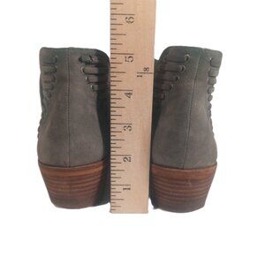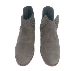 Vince Camuto Pevista Booties Women size 8 Gray Leather Suede Lace Block Heel