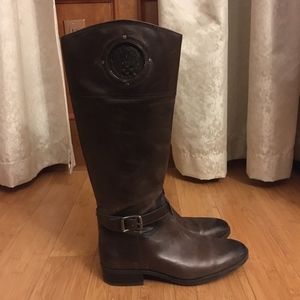 A lovely tall riding boot. Dark brown color. 9.5 M. Leather upper fabric lining. Gently used.