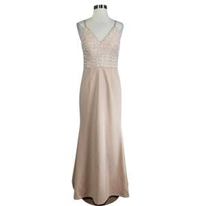 Vince Camuto Pink Sequined Evening Gown Size 10 Sleeveless V-Neck Formal Dress