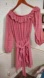 Elegant pink midi dress with stripes. Features ruffled neckline and tie waist. Long sleeves for versatile wear.