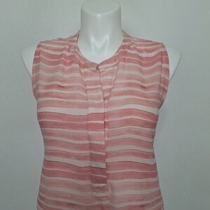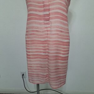 Vince Camuto Pink White Coquette Romantic Round Neck Striped Shift Dress Size XL