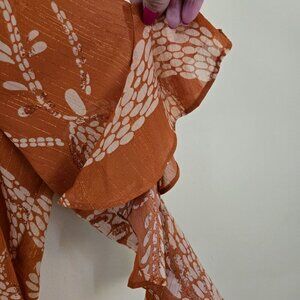 Vince Camuto Pintuck Ruffle Cuff Blouse Rust Leaf Pattern Subtle Sparkle Size L