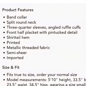 Elevate your wardrobe with this Vince Camuto blouse featuring a rust leaf pattern and pintuck ruffle cuffs. Perfect for all seasons, it offers a subtle sparkle and bohemian charm. 2023 design
