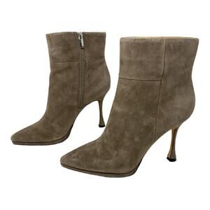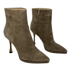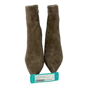 Vince Camuto Pitonnda Pointed Toe Suede Bootie Taupe Size 7.5; A pointy toe and slender flare heel frame a trend-savvy bootie set on a subtle platform for contemporary appeal.