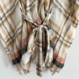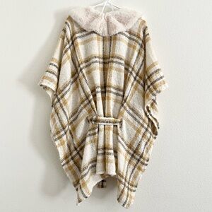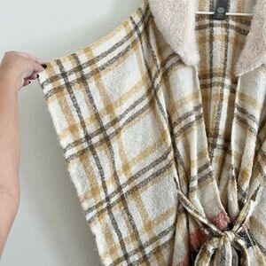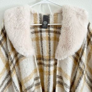 Vince Camuto Plaid Faux Fur Collar Tie Belted Shaul Poncho OS
