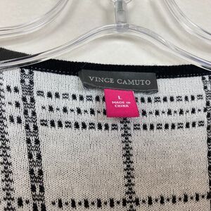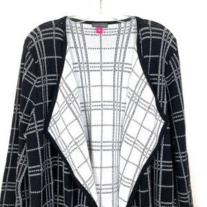 Vince Camuto Plaid Open Front Long Cardigan Women's Size L Black/White Soft