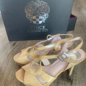 Vince Camuto Snakeskin Print Heels – Tan | Size [7]
