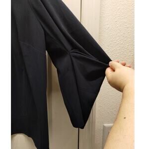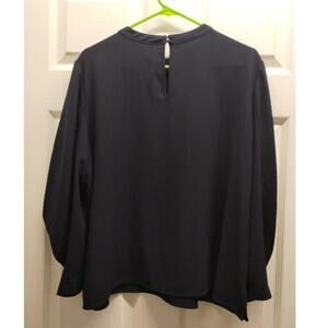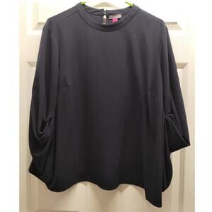 Vince Camuto Plus Size 1X Navy Blue Long Gathered Sleeves Keyhole Back Blouse