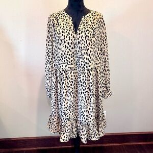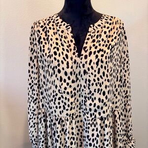Vince Camuto Plus Size Animal Print Long Sleeve Split Neck Baby Doll Dress, 1X