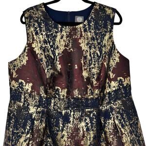 metallic jacquard dress, fit and flare cocktail dress, holiday party dress, sleeveless formal dress, wine navy gold dress, party dress, dress with pockets, plus size 16W dress