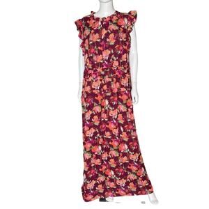 Vince Camuto Plus Size Printed Chiffon Ruffle Maxi Dress Floral Women’s Sz 22W