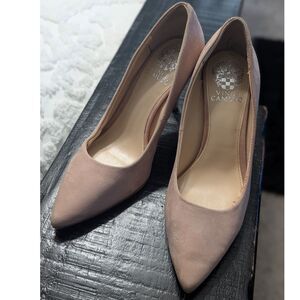 🥿 Vince Camuto Pointed Toe Suede Heels Almond Beige – Size 7.5 M