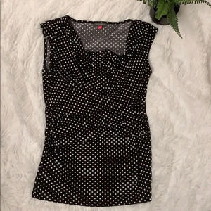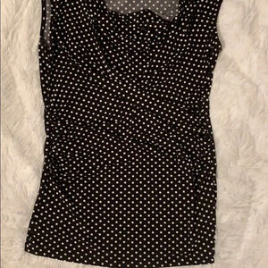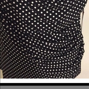 Beautiful draped neck with cinched waist sleeveless blouse. The cinched waist adds a extra bit of fitted flare. Black and white polka dots in excellent condition
