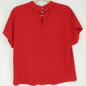 Vince Camuto Polka Dot Pearl Button Neck Short Sleeve Blouse Top Red Size Small