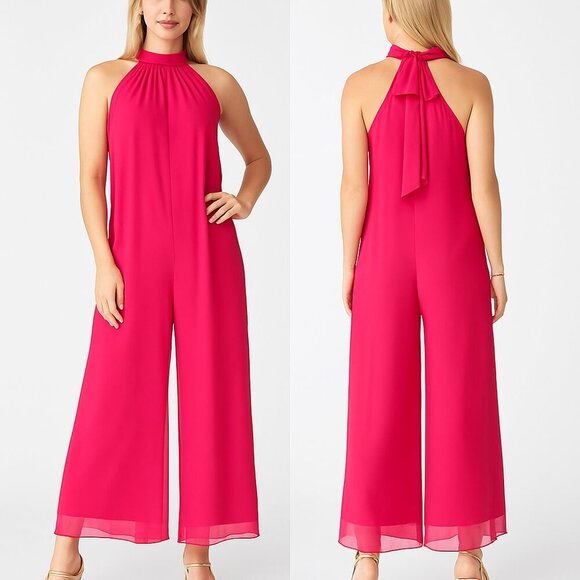 Vince Camuto Pomegranate Pink Halter Wide Leg Jumpsuit Women’s Medium NWT