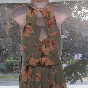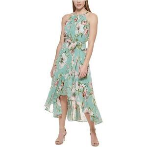 Vince Camuto Printed Chiffon Halter Dress High Low Sage 12