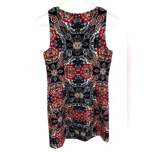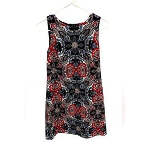 Vince Camuto Printed Jacquard Sleeveless Red Blue Summer Shift Dress Size 4