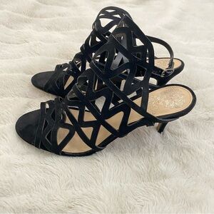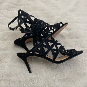 Vince Camuto Prisintha Leather Suede Black Cutout Cage Strappy Heels New Size 8