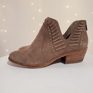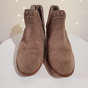 Vince Camuto Prism Suede Leather Block Stacked Heel Bootie Womens Size 7.5 Tan