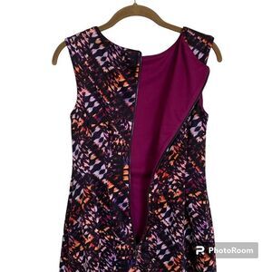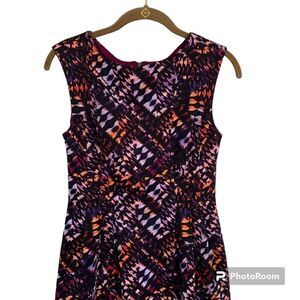 Vince Camuto Psychedelic Abstract Sleeveless Pleated A-Line Mini Dress Maroon Red Size 6