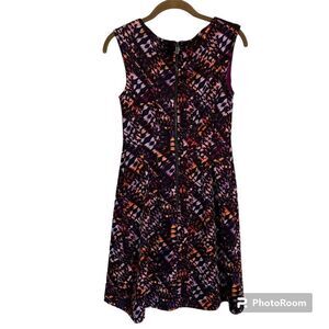 Vince Camuto Psychedelic Abstract Sleeveless Pleated Mini Dress Red Size 2
