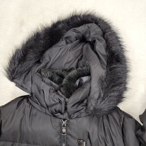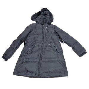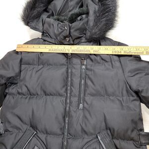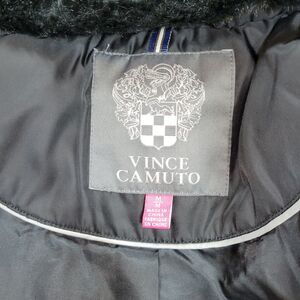 Vince Camuto Puffer Coat Womens Size Medium Black Faux Fur Goose Down Winter