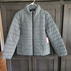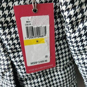 Vince Camuto Puffer Jacket Women Medium Zip Up Houndstooth Print Black White NWT