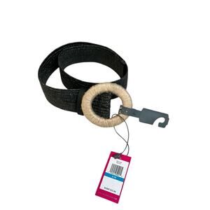 Vince Camuto Raffia Buckle Stretch Belt Size Small/Medium NWT Black Tan Stretch